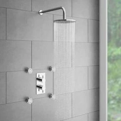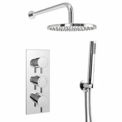 Create your own little oasis with this round Cruze Modern Thermostatic Shower. Its versatile design features a fixed rainfall shower head and a practical lightweight handset that you can move up and down as you please. This thermostatic mixer shower is manufactured using the latest ceramic disc technology that reduces leaks and drips and makes the shower hardwearing. The thermostatic element keeps the water at a safe temperature as you bathe. Its highly polished chrome finish and handy rubber nozzles mean it’s easy to keep it sparkling clean, too.