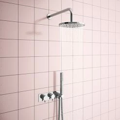 The Cruze modern concealed thermostatic control shower valve has been fitted with a handy shower handset. You can also be rest assured the clever thermostatic shower valve will always keep your water at a safe temperature. Features minimalist round handles this modern style shower valve comes with a matching chrome finish round shower head and is perfect for installing in a concealed arrangement. Valve diverts between two shower accessories.