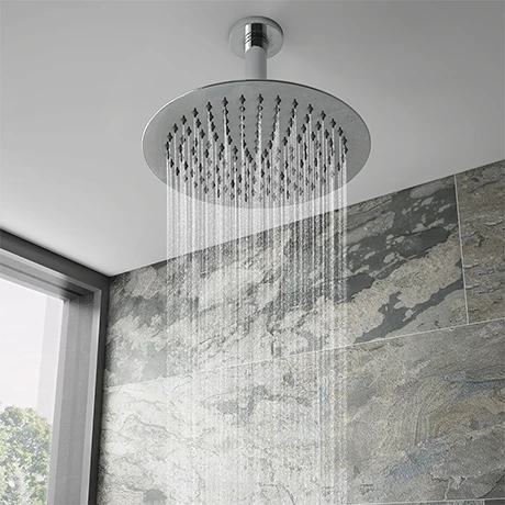 The Cruze ultra thin round shower head with short ceiling mounted arm offers a stylish minimalist design that looks great in any setting. Suitable for all plumbing systems and features rub clean nozzles. Our range of Shower heads are ideal for renewing the style of your bathroom affordably. Stainless steel construction with a stunning mirror finish.